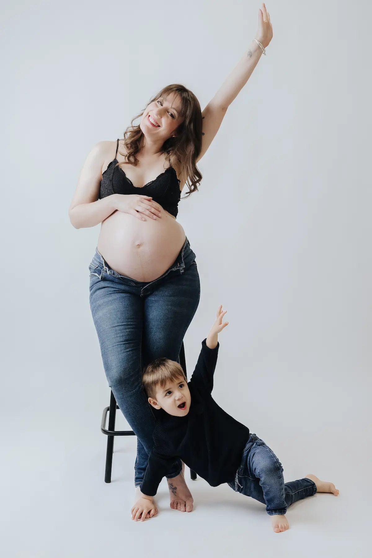 La sesión premamá en estudio de Santy, junto a su marido y su hijo, fue un retrato lleno de elegancia y emociones. En un ambiente cuidado y con una iluminación suave, capturamos esa serenidad especial que se respira cuando la familia espera la llegada de Jade, la nueva hermanita.